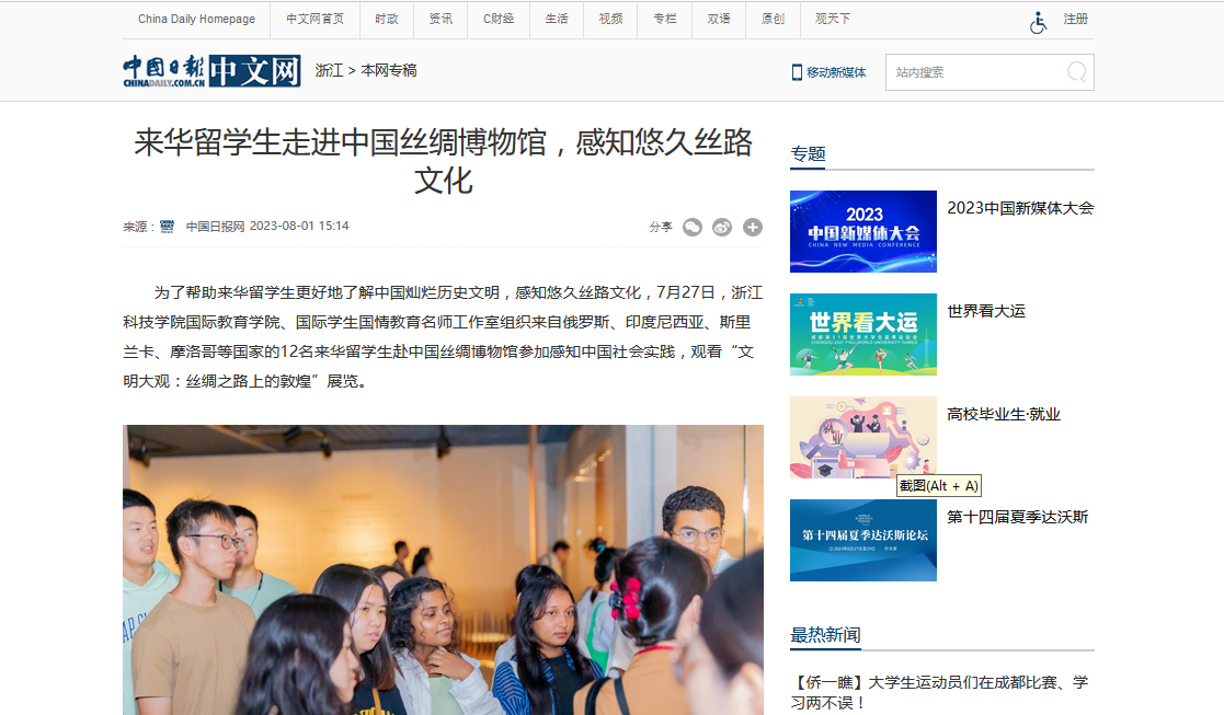 中国日报网:来华留学生走进中国丝绸博物馆,感知悠久丝路文化