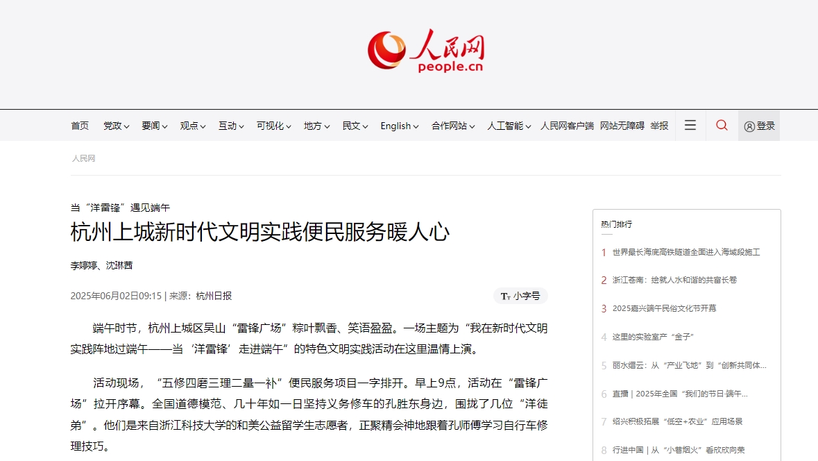 人民网、浙江在线、杭州新闻客户端:当“洋雷锋”遇见端午 杭州上城新时代文明实践便民服务暖人心