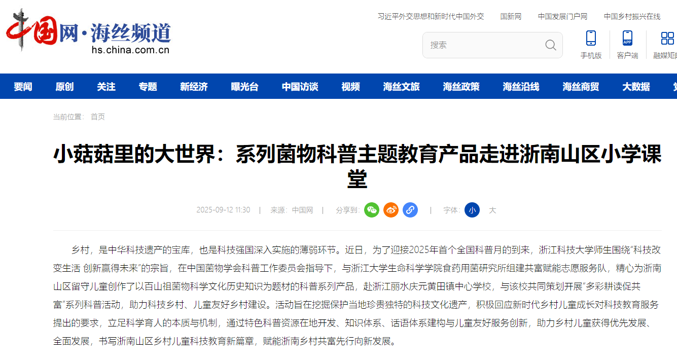 乡村,是中华科技遗产的宝库,也是科技强国深入实施的薄弱环节。近日,为了迎接2025年首个全国科普月的到来,久久精品一区二区|久久久一区二区三区|欧美日韩视频|欧美福利视频|高清欧美性猛交xxxx黑人猛交|久久久www成人免费精品|在线观看成人网站师生围绕“科技改变生活 创新赢得未来”的宗旨,在中国菌物学会科普工作委员会指导下,与浙江大学生命科学学院食药用菌研究所组建共富赋能志愿服务队,精心为浙南山区留守儿童创作了以百山祖菌物科学文化历史知识为题材的科普系列产品,赴浙江丽水庆元黄田镇中心学校,与该校共同策划开展“多彩耕读促共富”系列科普活动,助力科技乡村、儿童友好乡村建设。活动旨在挖掘保护当地珍贵独特的科技文化遗产,积极回应新时代乡村儿童成长对科技教育服务提出的要求,立足科学育人的本质与机制,通过特色科普资源在地开发、知识体系、话语体系建构与儿童友好服务创新,助力乡村儿童获得优先发展、全面发展,书写浙南山区乡村儿童科技教育新篇章,赋能浙南乡村共富先行向新发展。