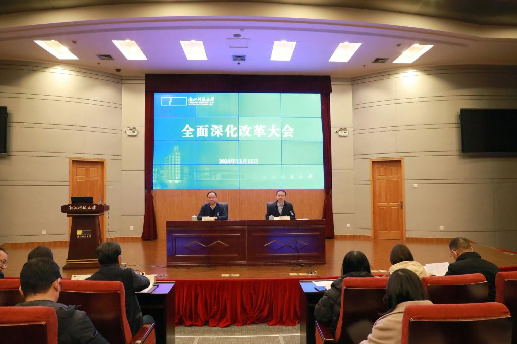 12月12日,学校召开全面深化改革大会。校党委书记赵东福、校长陈建孟等校党政班子成员出席会议。会议就全面落实学校第一次党代会提出的奋斗目标和各项任务,加快实施“学科登峰”主战略,提高学校内部治理效能,积极推进各领域改革作出部署。