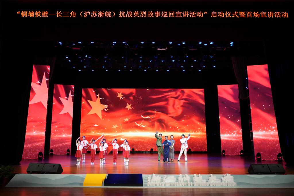 “巡回宣讲活动”以“弘扬伟大精神 奋进复兴征程”为主题,分“铭记、缅怀、传承”三大篇章,来自浙江革命烈士纪念馆、上海市龙华烈士陵园、南京市雨花台烈士陵园、池州烈士陵园等烈士纪念设施保护单位的宣讲员和来自浙江省高校的学生一起,通过运用舞台剧、音乐剧、情景朗诵、主题讲述等沉浸式宣讲形式,先后将《誓死不做亡国奴》《民族号手》《光明之路》《红铁》《”老天”司令员》《一门三烈》《一张迟到的老照片》《黎明前的悲歌》《我们不会忘记》等英烈故事一一展现,把观众带回烽火连天的抗战岁月。