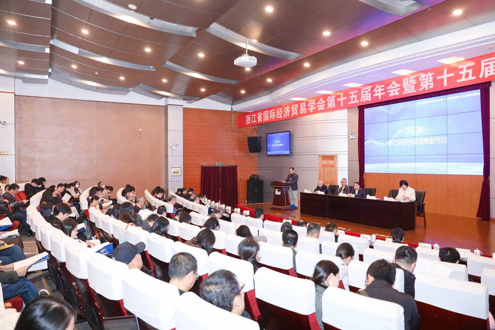 12月8-9日,浙江省国际经济贸易学会第十五届年会暨第十五届国际经贸论坛在我校召开。本次论坛由浙江省商务厅指导,浙江省国际经济贸易学会主办,我校经管学院、浙江省商务研究院、浙江大学开放型经济与发展优势特色学科承办。省内外知名专家,全省商务系统、各高校、科研院所等单位的200余位代表参加会议。浙江省商务厅、 浙江省国际经济贸易学会、我校负责人出席开幕式并致辞。