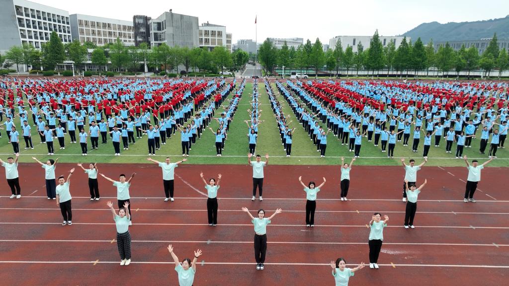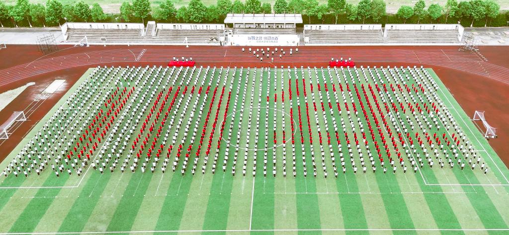 近日,安吉校区举办“以舞之名,悦动青春”大型健身舞活动,全体辅导员与1850余名学生参加。“我和我的国,激荡着同一条脉搏……”健身舞活动在歌曲《我和我的国》中拉开序幕,全体辅导员带领学生一起在操场上排成整齐的队伍,蓝色校服构成的底色铺满绿荫操场,中间身着红色上衣的学生列队构成“10年”字样,庆祝安吉校区投入运行十周年。所有人随着音乐的节奏,舞动着青春的舞姿,展现了科大人英姿勃发的风采与昂扬向上的面貌。